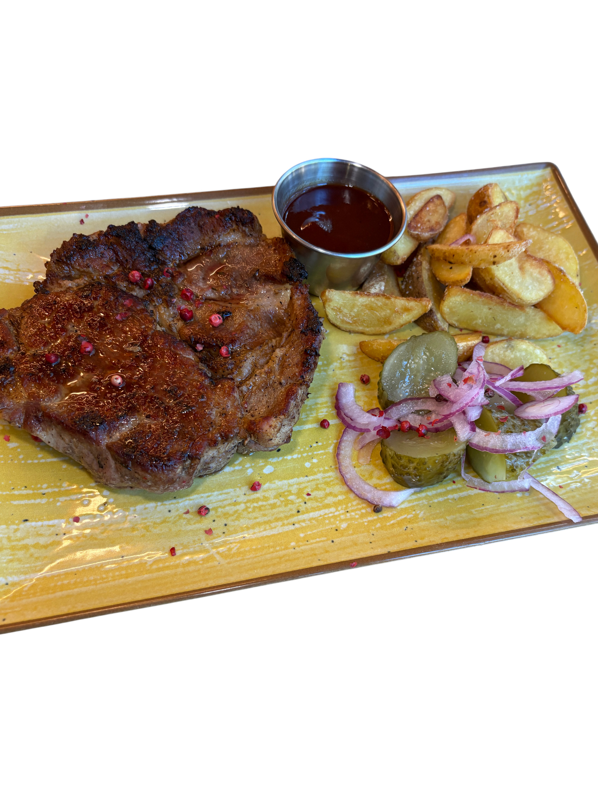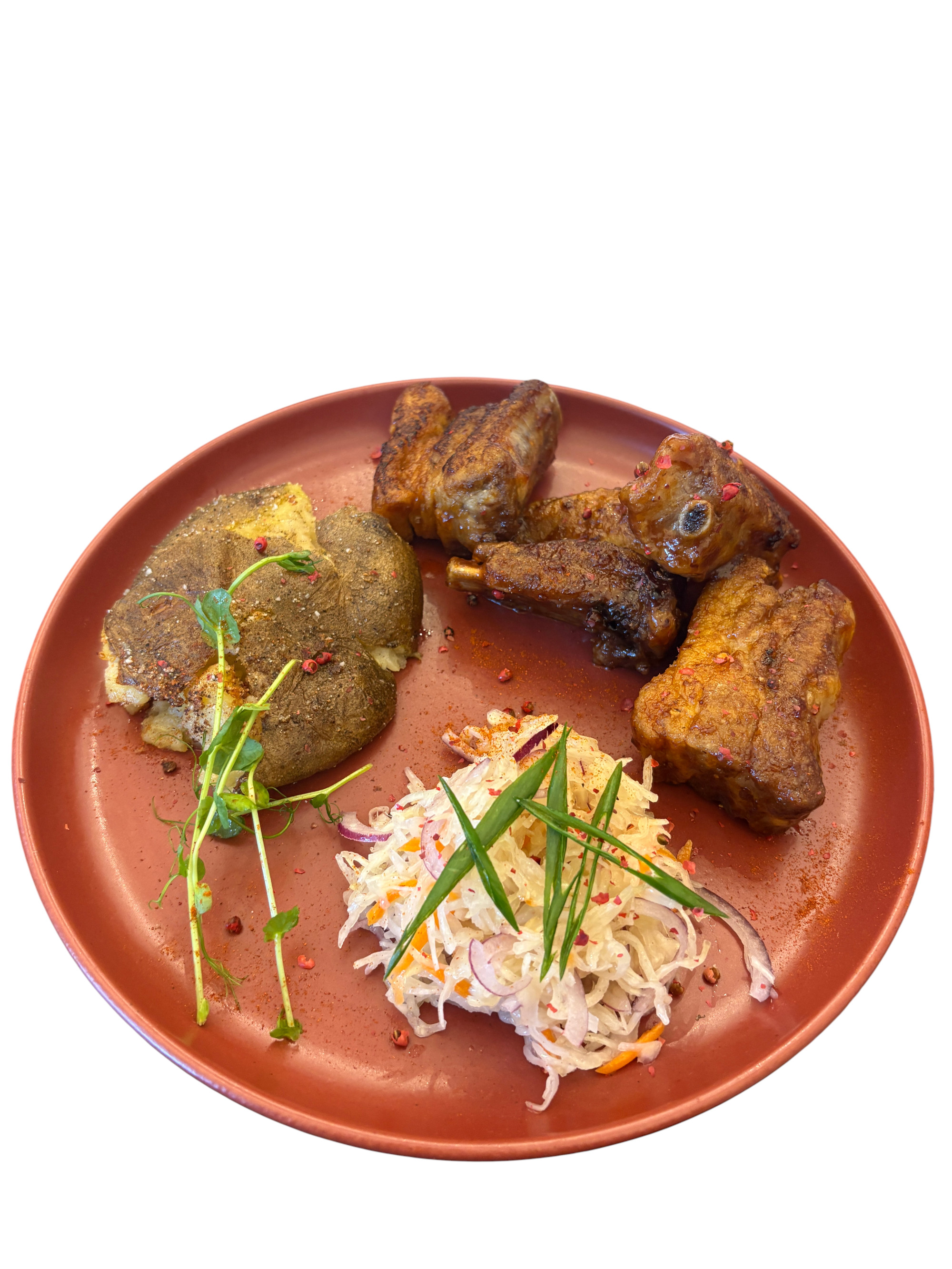 Свинячі ребра з запеченою картоплею та квашеною капустою