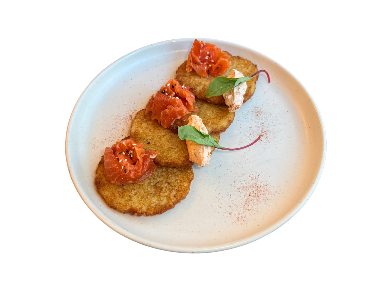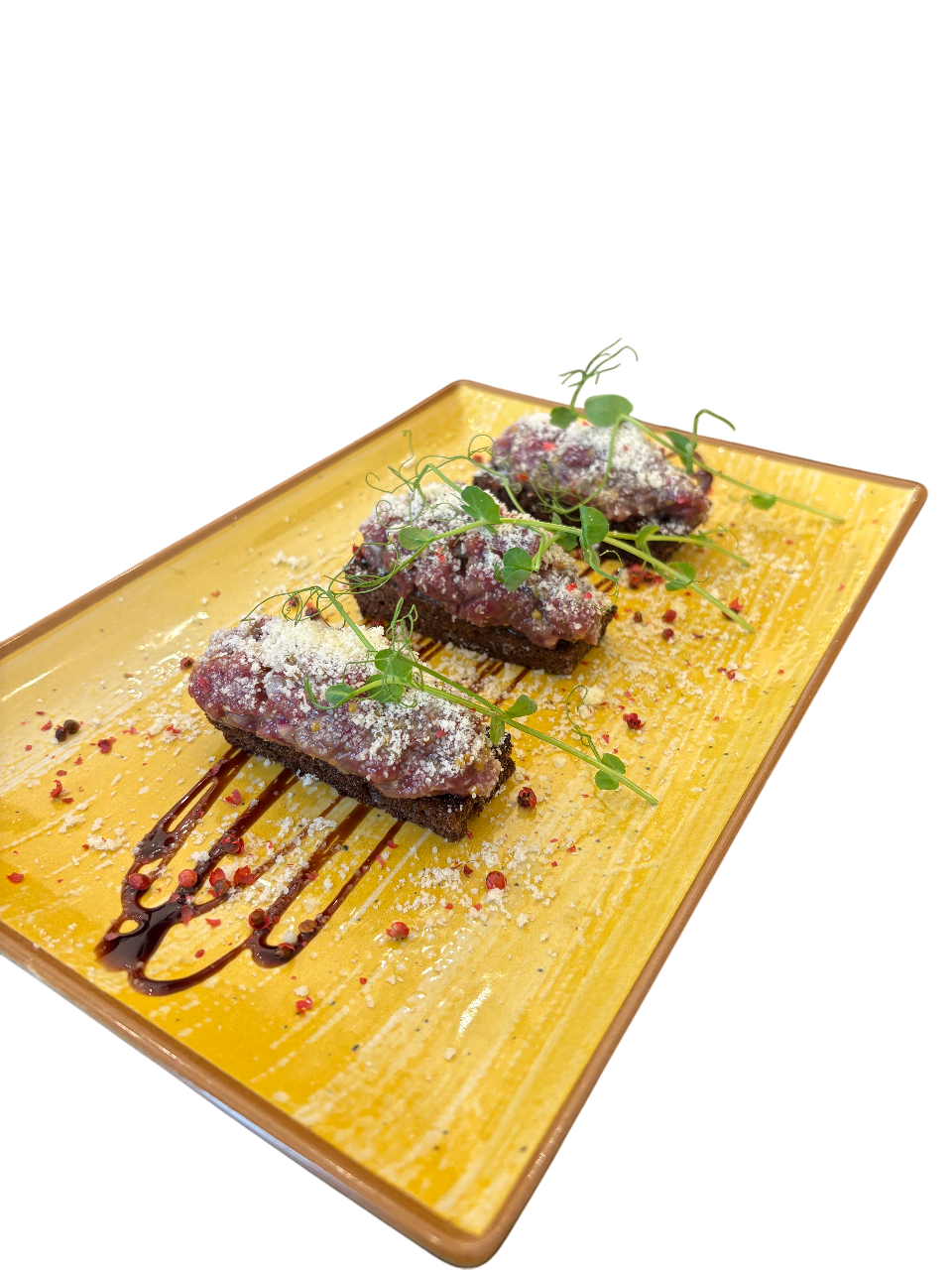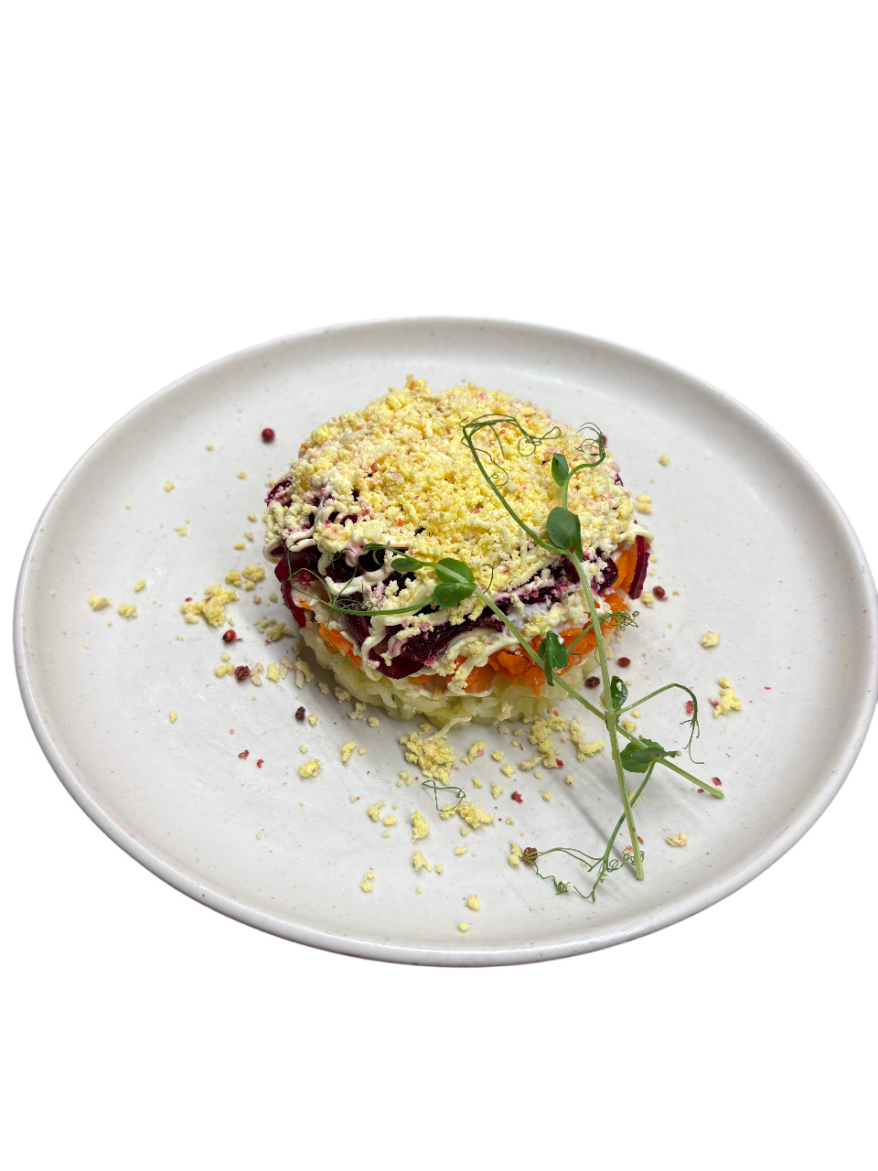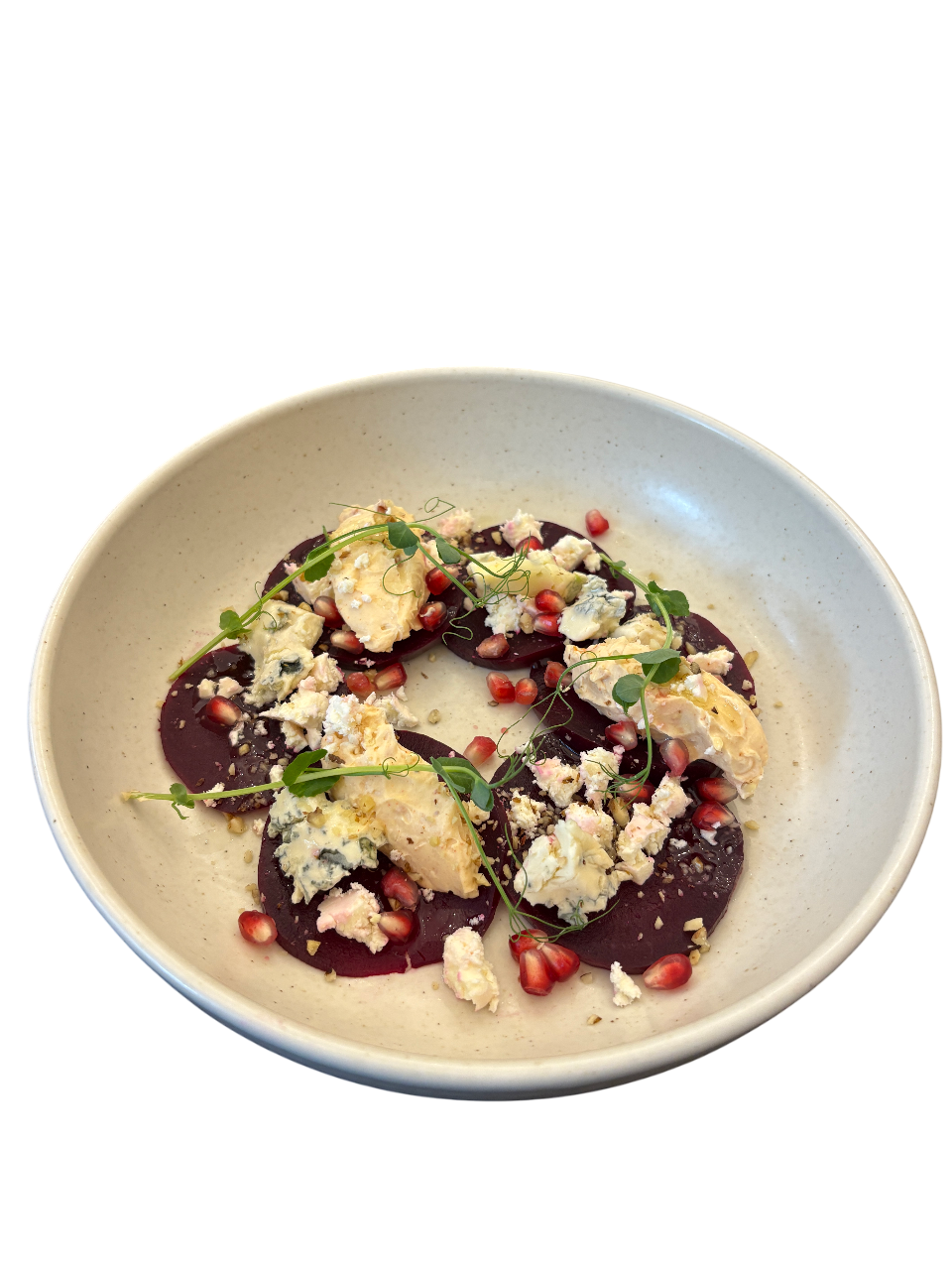 Салат із запеченного буряка з дор блю, крем сиром та зернами гранату