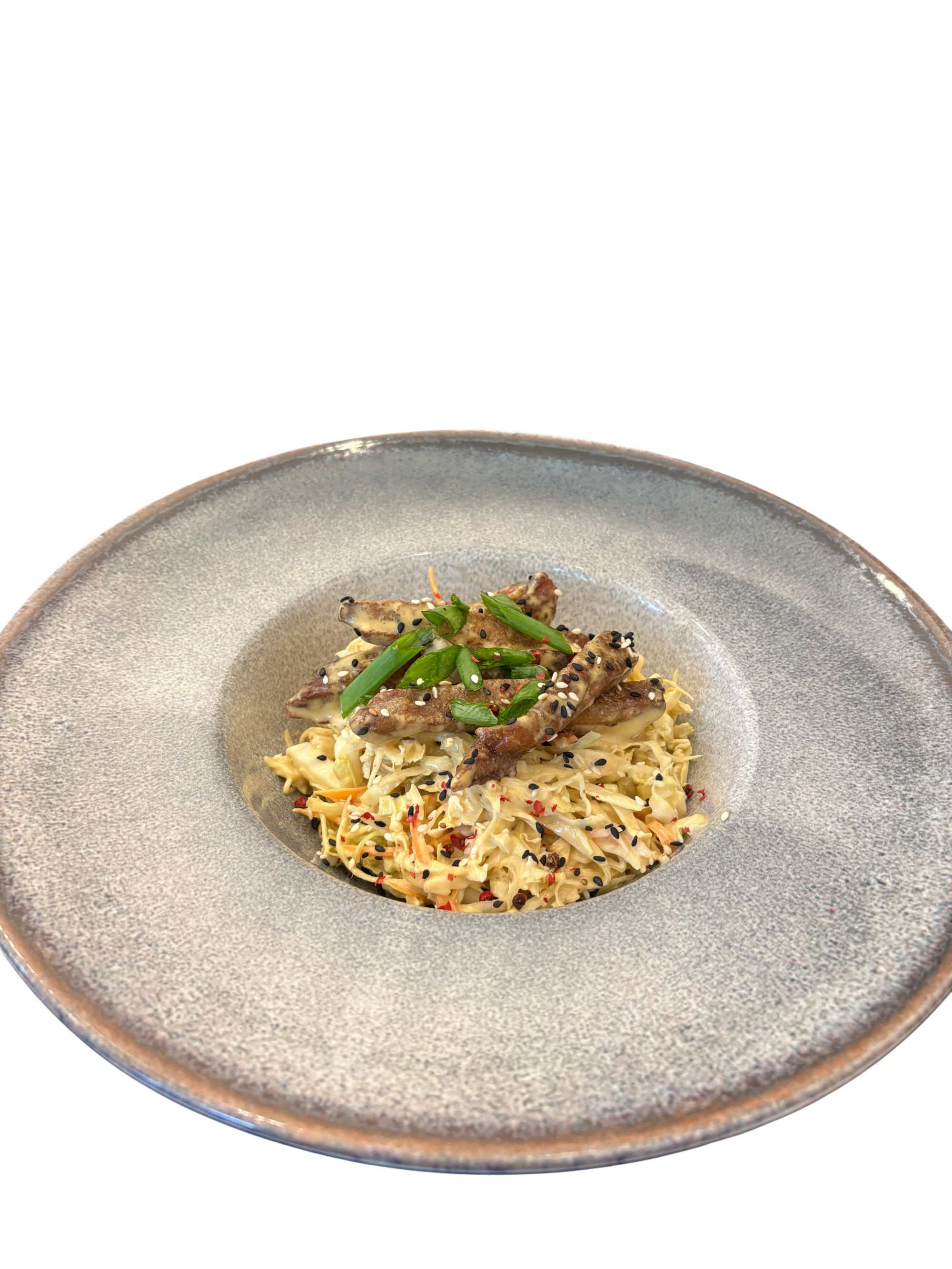 Телячі медальйони з хрусткими баклажанами і чилі-глязур’ю