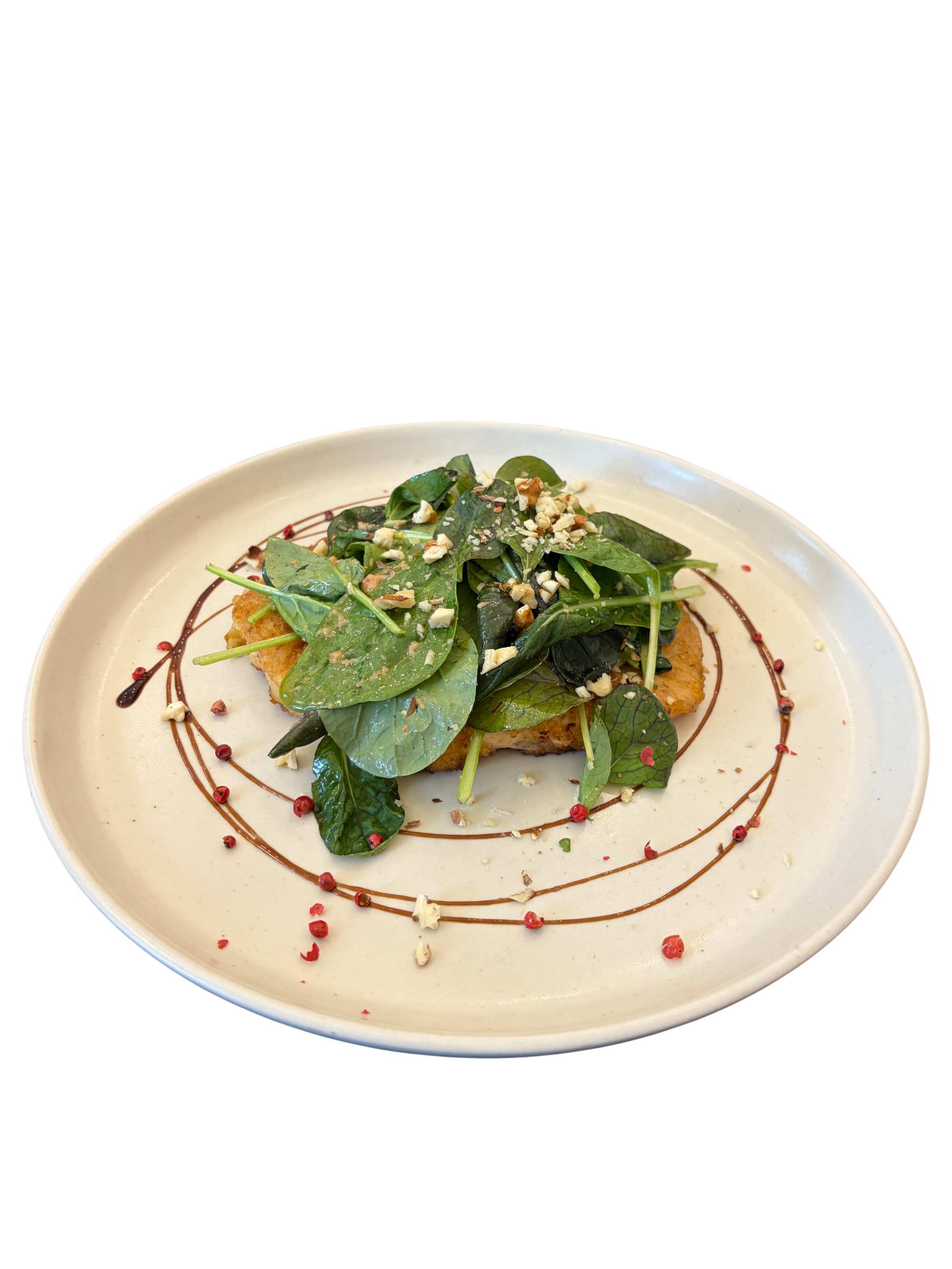 Шніцель із курки з хрустким горіхово-зеленим гарніром